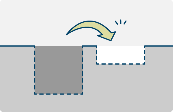 ピットを浅くすることにより、万が一誤って落下した場合も、比較的軽微なケガで済むことが想定されます。
